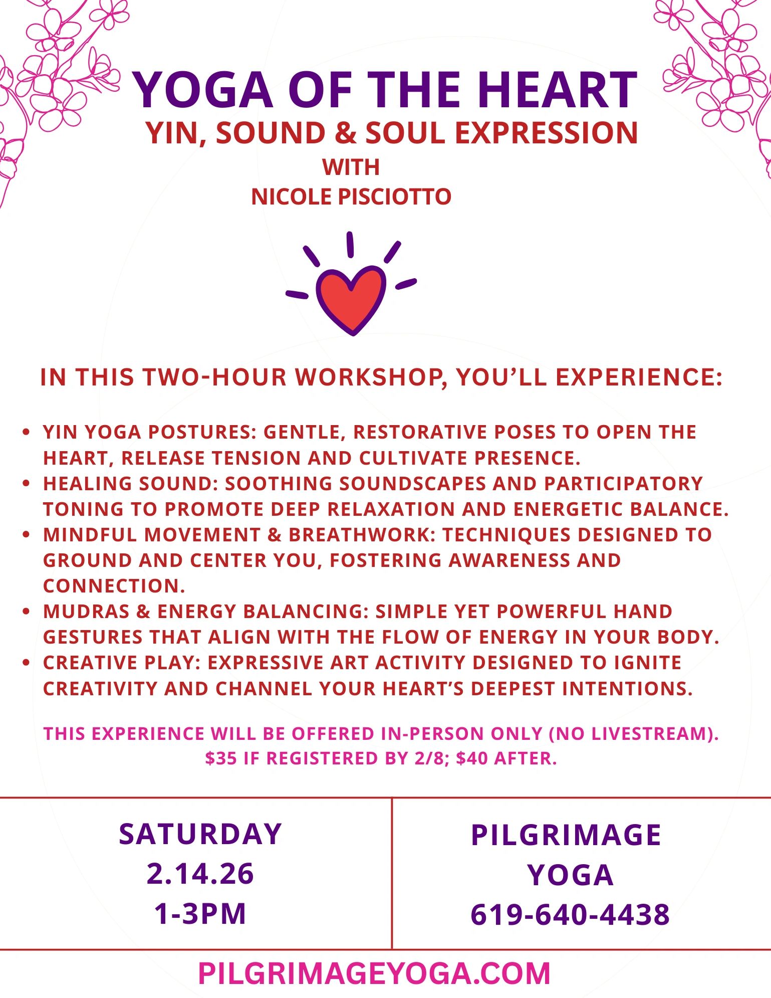 This Valentine’s season, connect deeply with yourself and others in a soul-nourishing exploration of the mind-body-soul connection. Yoga of the Heart invites you to tap into your inner wisdom through a blend of yin yoga, healing sound, and artistic expression.