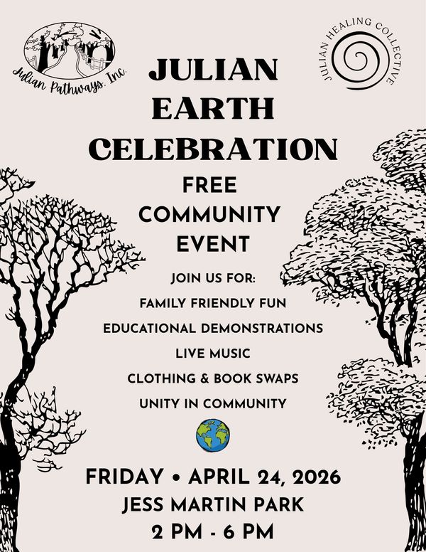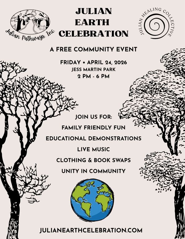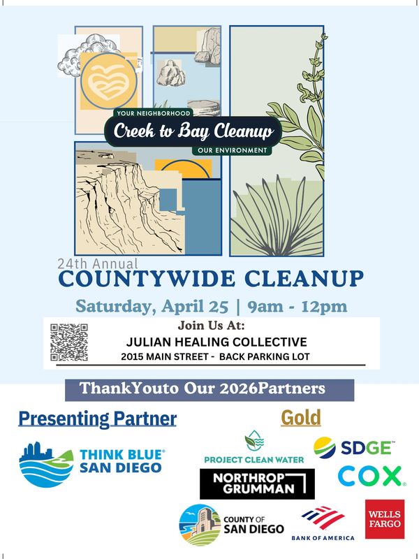 Join the largest Earth week cleanup in San Diego County on Saturday April 25th from 9-12pm! If you can't join us in Julian please sign up for any of the 100 locations across the county!