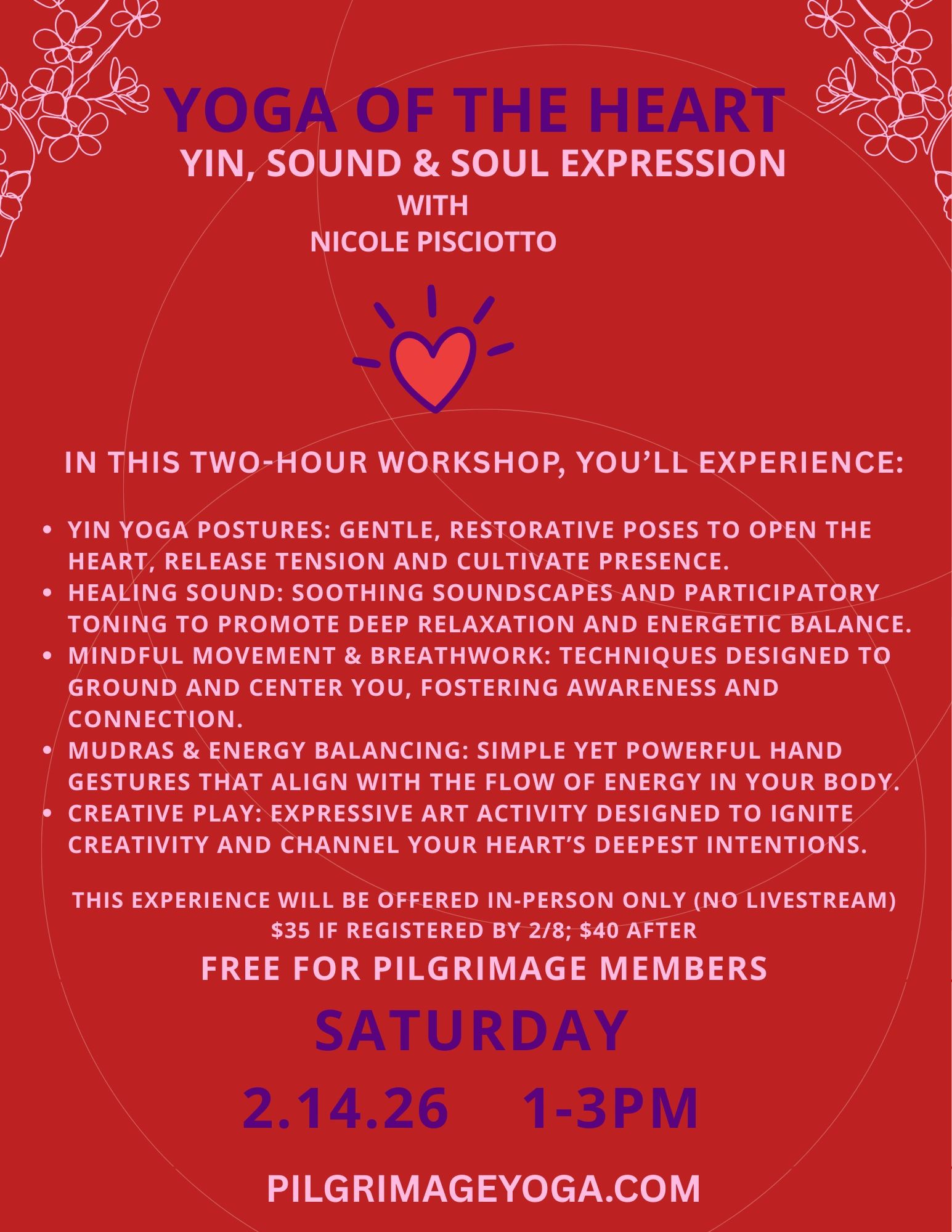 This Valentine’s season, connect deeply with yourself and others in a soul-nourishing exploration of the mind-body-soul connection. Yoga of the Heart invites you to tap into your inner wisdom through a blend of yin yoga, healing sound, and artistic expression.